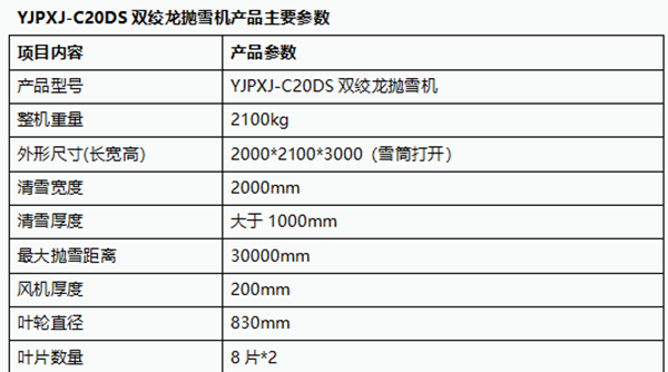 YJPXJ-C20DS自带动力双绞龙重型抛雪机