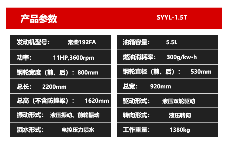 1、1.5吨全液压压路机为双钢轮压路机;用途广泛,性能优越,操作方便,经久耐用。