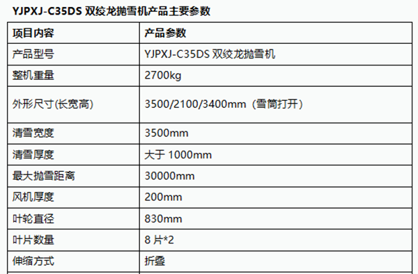 YJPXJ-C35DS自带动力双绞龙重型抛雪机