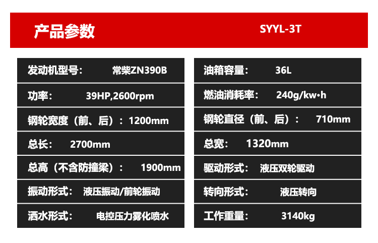 5、前轮液压振动,性能稳定,压实能力强。后置4个平胶轮,揉搓地面,压实密实度更高。